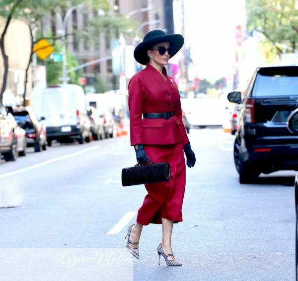 Дженнифер Лопес появилась на улицах Нью-Йорка в малиновом костюме