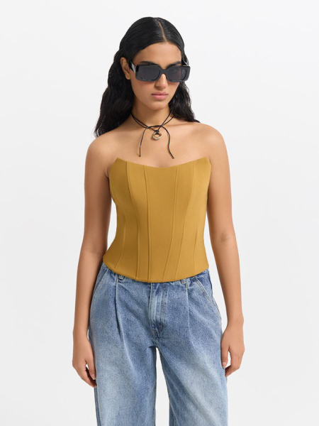 Нельзя сказать, что корсеты — новинка сезона. Они не теряют актуальности четвертый год подряд. Но в летнем сезоне 2024 есть характерное отличие. Выбирайте модели без выделенного лифа. Корсеты такого кроя можно носить не только с офисными костюмами, но и с широкими джинсами.