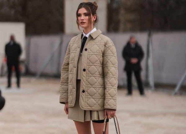 Правило простое: чем мельче стежки, тем «тоньше» вы выглядите. Алмазы, «елочка» и узкая горизонталь визуально утончают, большие «луковицы» и широкая горизонтальная простежка добавляют объема. «Для курток выгоден прямой H-крой до середины бедра с аккуратным воротником-стойкой или без воротника вовсе. Если грудь большая или плечи широкие, выбирайте V-вырез воротника, он вытягивает линию шеи и облегчает верх», — говорит эксперт.