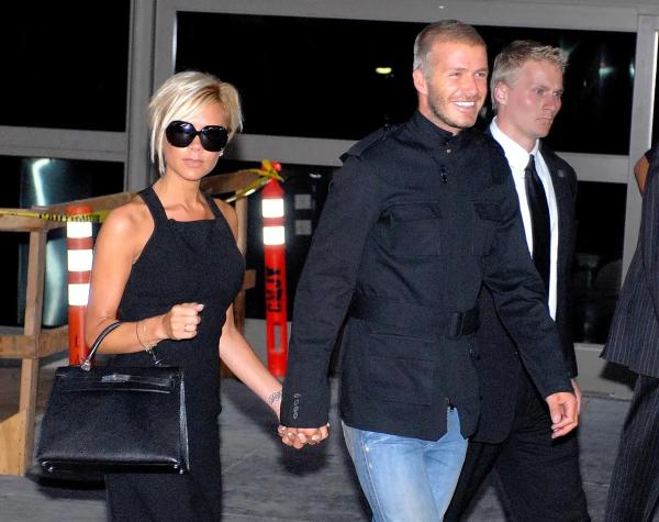 Дэвид Бекхэм и Виктория Бекхэм с сумкой Hermes в аэропорту Лос-Анджелеса, 2007 год
