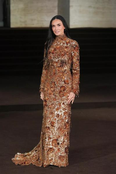 Образ дня: Деми Мур в золотистом платье на кинопремьере