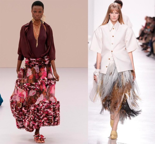 Хотя возможны исключения, в случае если верх является комплектной вещью, и вместе они создают раздельное платье. Такие вещи можно носить вместе и порознь. Если верхняя часть не является укороченным топом, то верх и низ сливаются в единое платье. Таких комплектов тоже не мало на Неделях моды, но они заслуживают отдельной публикации, сегодня же обратим внимание только на юбки.