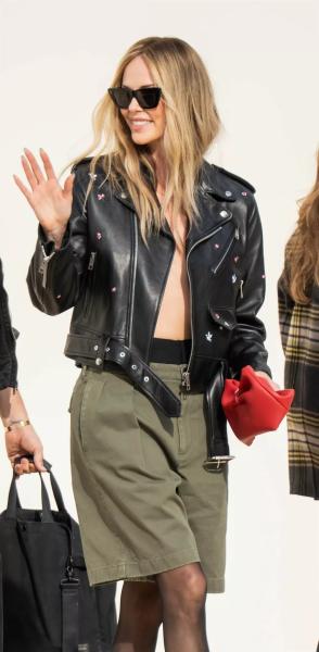 Шарлиз Терон стала звездой Недели моды в Париже, появившись на публике в экстравагантном образе. Терон посетила показ Dior в среду, 1 октября, и для выхода в свет выбрала зеленые шорты из последней мужской коллекции, которые сочетала с прозрачными черными колготками. Сверху она надела черную кожаную байкерскую куртку с вышитыми птицами и цветами, однако звезда предпочла обойтись без рубашки или топа, демонстрируя обнаженное тело.